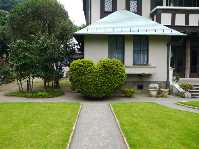 ハート型に刈り込みをされている造形植木がありました!