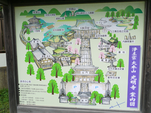 入口前には光明寺の案内図が設置してあります。